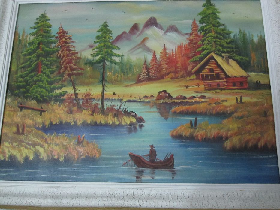 Tablou Peisaj Pe Rau La Pescuit Pictat Pe Panza 80x62cm Ieftin Botosani Olx Ro