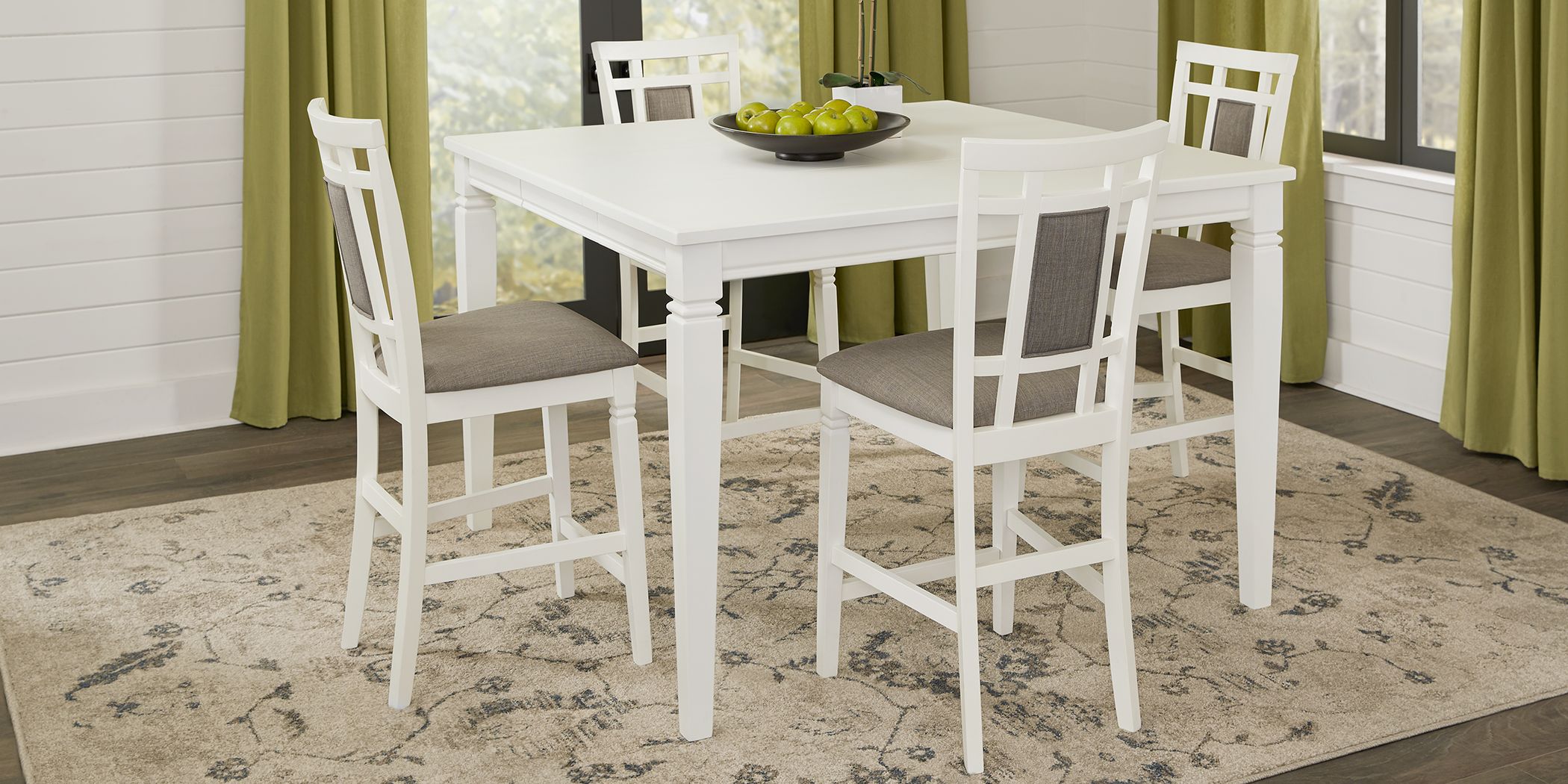 Riverdale White 5 Pc Square Counter Height Dining Room With Upholstered Back Stools Rooms To Go
